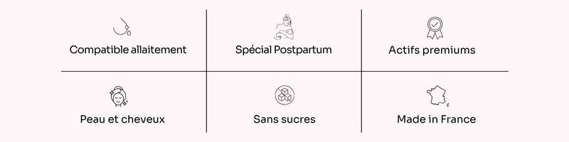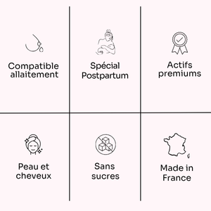 Le Coffret Postnatal combine les gummies POSTNATAL et le Collagène & CoQ10 pour accompagner la récupération après la grossesse.